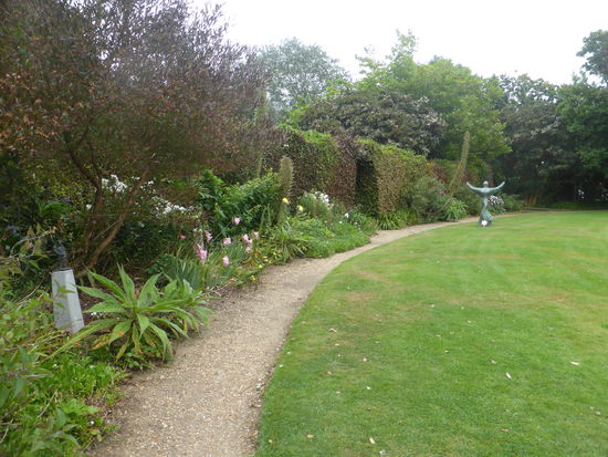 Heute ist es regnerisch und auch erheblich kühler. Mal sehen was dabei die Inselrundfahrt bringt. Unser Guide bringt uns als erstes zu unserem gestrigen Klippenweg-Endpunkt; gegenüber gestern wirkt hier fast nichts mehr. – wenig Sicht, wolkenverhangen – aber noch regnet es nicht. Auch an unserem nächsten Stop, dem Sausmarez Manor, können wir noch trockenen Fußes und Hauptes durch den subtropischen Skulpturengarten wandern.