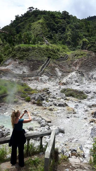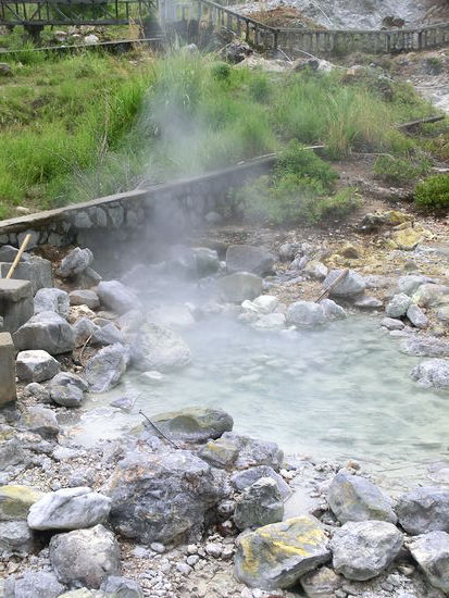 Neben Schwefeldampf und heissen Quellen, die hier in Form vom Fusswaschbecken gebändigt werden, kann man einen kleinen Spaziergang um die Schwefelfelder machen. Für für alle Religionen Indonesiens findet sich hier ein eigener Ort zum Beten.