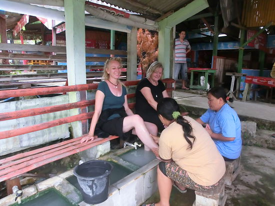 Mit den 3 Frauen, die uns massiert haben, hatten wir richtig Glück. Natürlich gab es neben viel Quatschen, Kichern und Lachen das obligatorische Selfie. Bei der Fussmassage ist es übrigens nicht geblieben. Rücken, Nacken, Kopf und Arme waren auch noch dran. Wir liessen glückliche Frauen zurück, die das erste Mal „Bules“ massieren konnten. Ines Nase, Marittas blaue Augen, unser blondes Haar und die helle Haut haben wir trotz der Tauschangebote behalten.