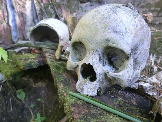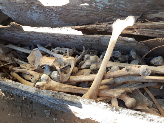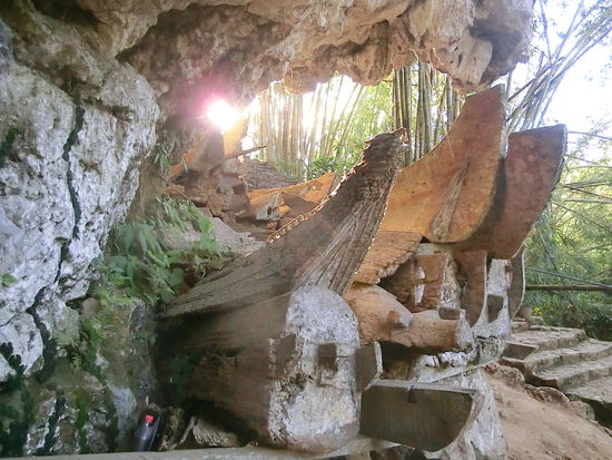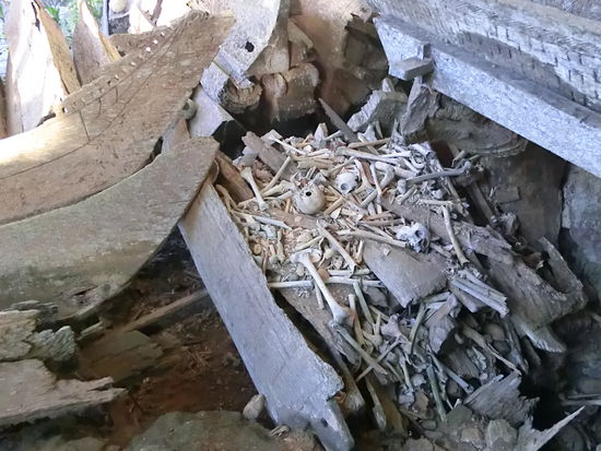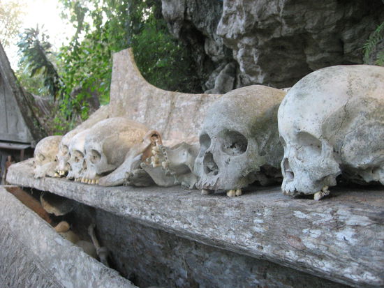 Dieser Ort hatte in der späten Nachmittagssonne für uns einen mystisch-magischen Reiz. Viele der ehemals hängenden Särge sind im Laufe der Zeit vom Felsen abgestürzt, aber die blossgelegten Schädel und Knochen haben weder etwas grausames, noch makabres. Sie scheinen wie ruhige Geister auf eine andere Zeit zu warten.