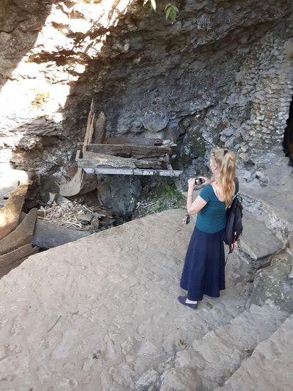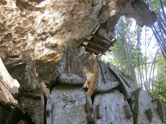 Hinter dem kleinen freiluftmuseumsähnlichen Dorf Kete Kesu haben wir den Pfad zu den hängenden Gräbern an bizarren Felswänden gefunden.