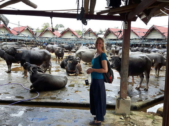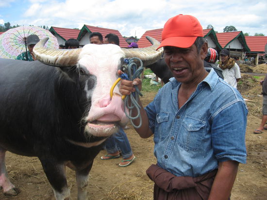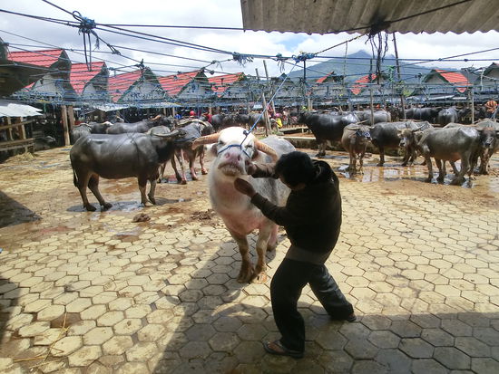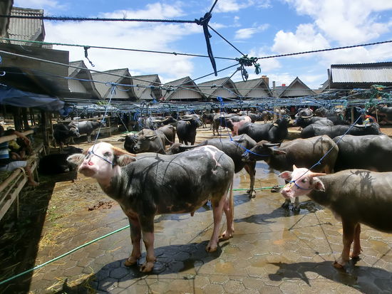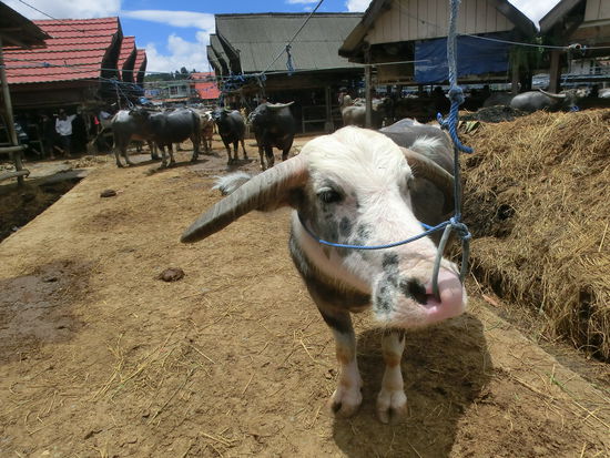 Am teuersten sind die gefleckten und die hellen Büffel. Sie kosten viele Millionen Rupiah. Die Tiere stehen den ganzen Tag in der erbarmungslosen Sonne, aber Wasserbüffel sind den Toraja ein wertvoller Besitz und so bekommen sie von Zeit zu Zeit eine Dusche und die ein oder andere Streicheleinheit.