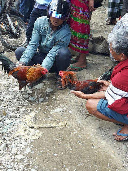Richtig gut geht es hier nur den Kampfhähnen, die zwar an diesen Tagen aufeinander gehetzt werden, aber ihren Besitzern heilig sind. Der Kampfhahn ist ein wichtiger Zeitvertreib für indonesische Männer und sie pampern und päppeln die Tiere bis zur Kampfreife.
