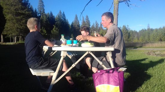 Zum Abendessen holten wir unsere Kühlbox raus und machten es uns im Garten der Lodge gemütlich.