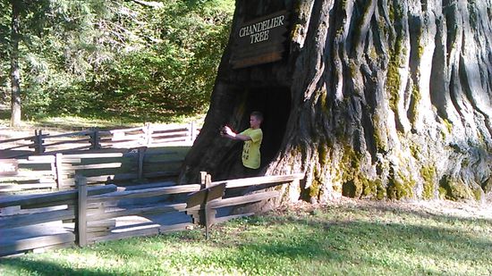 Quasi schon hinter der Avenue (bei Leggett) wollten wir durch einen Drive-Thru-Tree fahren. Wobei, als wir in den eigens dafür angelegten Park fuhren und wir vor dem Baum (Chandler Tree) standen, uns unser Augenmaß (und die Vorbemerkung der Ticketverkäuferin "Your car might be too big") von einer Durchfahrt absehen liessen.