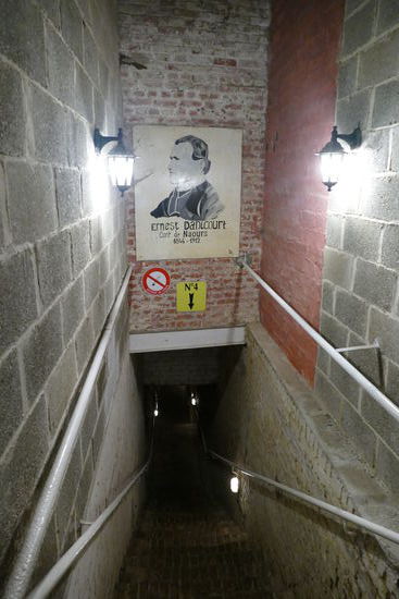 Auch hier wurden - ähnlich wie in Arras - seit dem Mittelalter in unterirdischen Steinbrüchen Kreidefelsen abgebaut um sie unter anderem für den Bau von Kirchen und Kathedralen zu verwenden. In unsicheren Zeiten nutzten die Bewohner von Namours die entstandenen Hohlräume als Zufluchtsort. So entstand ein Labyrinth von Gängen, Zimmern, Hallen, Kapellen und Versorgungsschächten. Zusammen mit ihrem Vieh lebten teilweise bis zu 2000 Menschen in dieser unterirdischen Stadt. Während der beiden Weltkriege waren die Grotten Zufluchtsort, Lazarett und Funkstation. Die Führung mit einem deutschsprachigen Audioguide ist sehr eindrucksvoll.