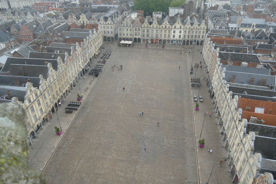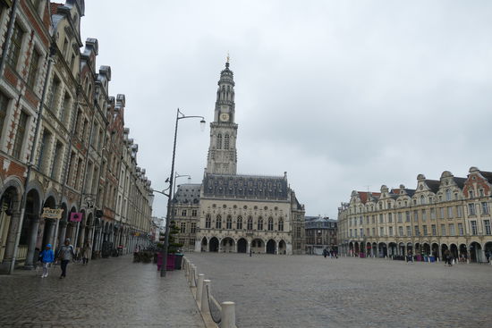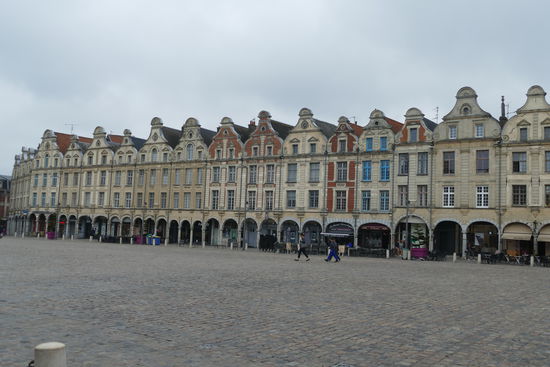 Wir fahren weiter nach Arras. Der im WoMo-Führer beschriebene Stellplatz ist eng, voll und hässlich neben der Schnellstraße. Über Nacht bleiben wir hier bestimmt nicht. Aber wir parken den Mumin in der Sackgasse am Straßenrand und auf geht's in die wirklich sehenswerte Altstadt. Hier ist etwas mehr los als in Douai. Wir erklimmen den Beffroi, hören das Glockenspiel und tauchen anschließend ab in die Untergründe der Stadt. In einem unterirdischen Steinbruch wurden seit dem Mittelalter Steine abgebaut und die entstandenen Hohlräume dienten später als Lager für die Marktbeschicker sowie Kellerräume der umliegenden Gebäude. Nach einer interessanten Führung hat draußen der Nieselregen leider zugelegt, so dass wir die wunderschönen Plätze "Grande Place" und "Place des Héros" mit den Arkadengängen nur im Schnelldurchlauf passieren. Hier wäre ein längerer Aufenthalt sicher lohnenswert.