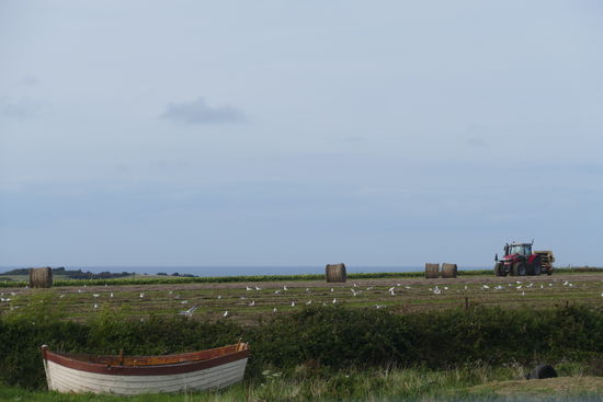 Wir genießen noch einen gemütlichen Abend vor dem Mumin und können den Landwirten dabei zuschauen, wie sie die Heuernte einbringen. Es herrscht Hochbetrieb auf den Äckern rund um uns herum. Es gibt noch einen wunderschönen Sonnenuntergang und heute sind wir hier die einzigen Übernachter. Die Ferienzeit scheint zu Ende zu gehen. Morgen wollen wir weiterziehen entlang der Côte d'Opale.