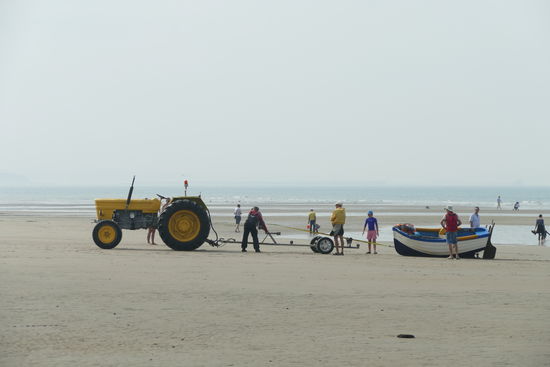 Frühstück gibt es heute draußen im Sonnenschein, danach unternehmen wir einen schönen langen Strandspaziergang. Weil die Orte entlang der Küste keine Häfen haben, werden die (Fischer-)Boote mit Traktoren an den Strand gebracht. Bei Flut können sie starten und mit dem Einsetzen der Ebbe werden sie wieder an Land gezogen. Ein Spektakel, das viele Zuschauer anlockt.