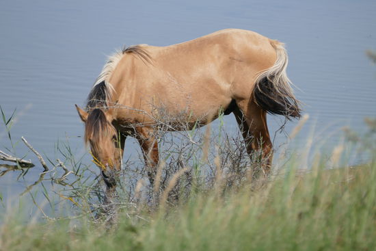Nachdem in der Nacht ein Gewitter für Abkühlung gesorgt hat, ist der Morgen eher grau und bedeckt. Wir werfen unseren Generator an für Kaffeewasser und eine warme Dusche. Hier stören wir niemanden, denn um uns herum grasen nur die Pferde auf der Koppel.