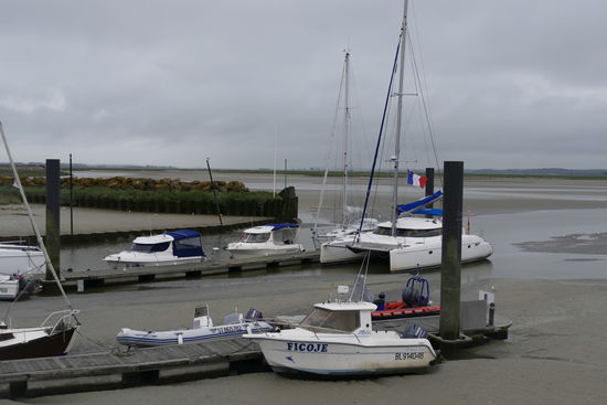 Nachdem wir uns häuslich eingerichtet haben, machen wir uns auf den Weg ins Städtle. Ein hübscher Fischerort, touristisch herausgeputzt aber noch mit einem ursprünglichen Charme. Eine Dampfeisenbahn startet von hier aus um die Bucht herum ins gegenüber liegende Saint-Valéry-sur-Somme. Da heute jedoch eher Schmuddelwetter mit Nieselregen herrscht, ist nur wenig los. Wir schauen uns um, gönnen uns Moules Frites als Mittagssnack, kaufen Mitbringsel für zuhause und machen anschließend noch eine Gassi-Runde auf dem Deich. Dabei erwischt uns jedoch der Regen und Wind von quer, so dass wir zu dritt patschnass zurück kommen. Den Rest des Nachmittags verbringen wir bei Tee und Keksen drinnen, versuchen uns zu trocknen (es riecht nach nasser Hund...) und lesen unsere Bücher.
