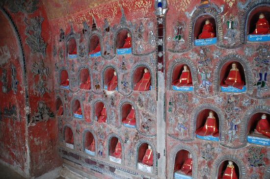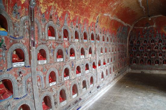 In der angrenzenden Pagode sind lauter kleine Buddha's in Wandvertiefungen und davor ein Schild der Person, die hier gespendet hat.