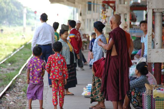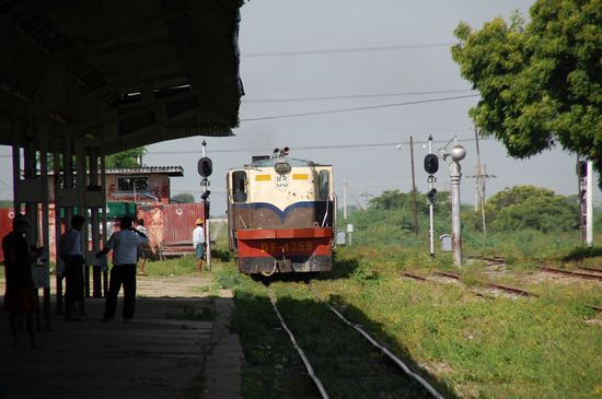In Thazi haben wir am Bahnhof gehalten. Hier muss man umsteigen, wenn man die Route Mandalay-Yangon fährt und aber nach Westen oder Osten weiter möchte.