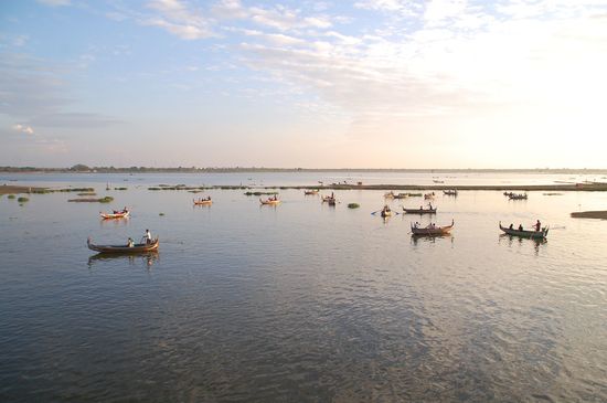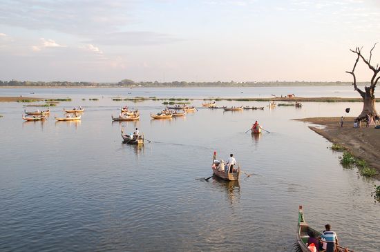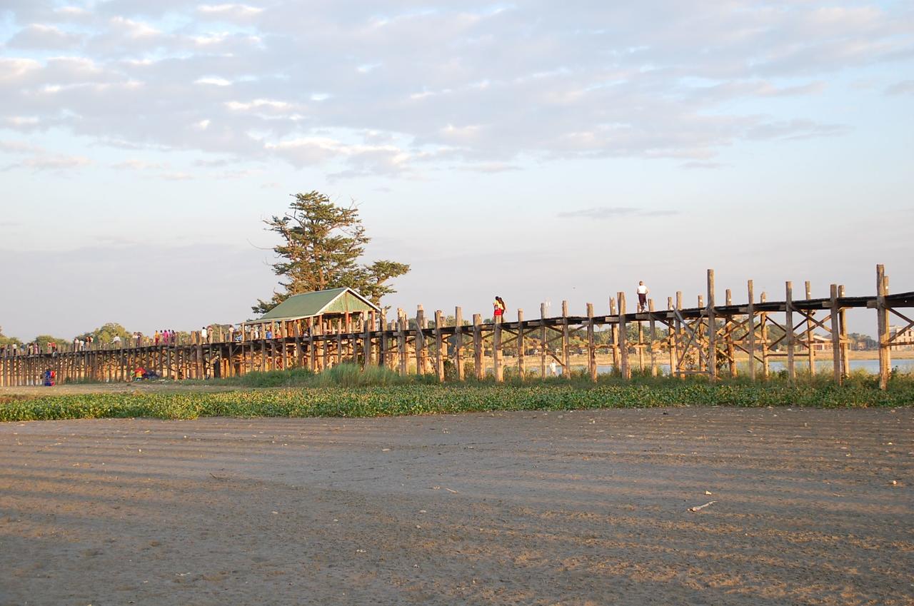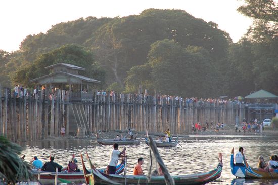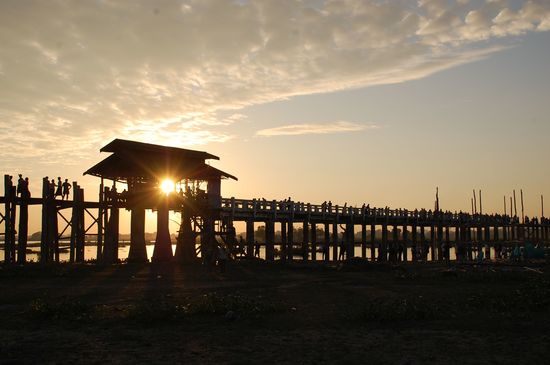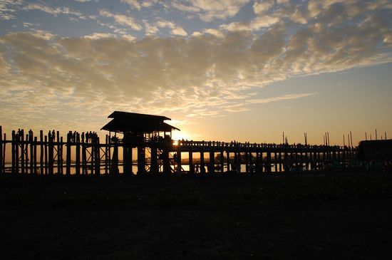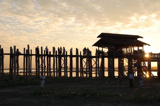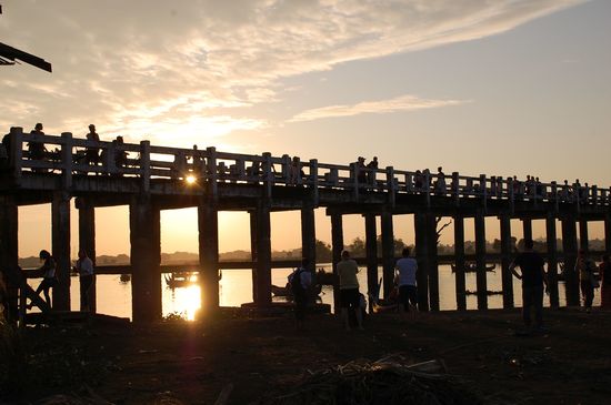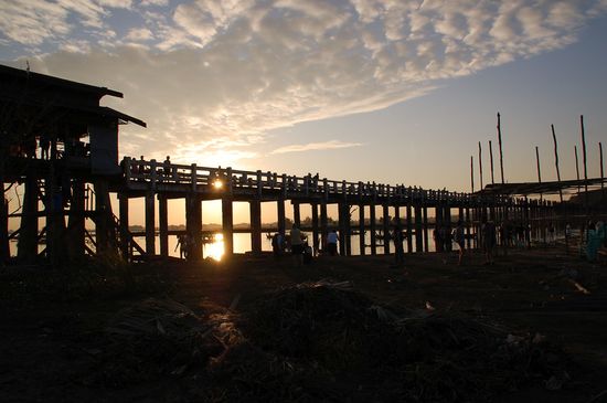 Gegen 17 Uhr waren wir in Mandalay, oder besser an der U-Bein Brücke angekommen. Diese ist 1,2km lang und somit die längste Teakholzbrücke der Welt. Sie wurde ca. 1850 erbaut.