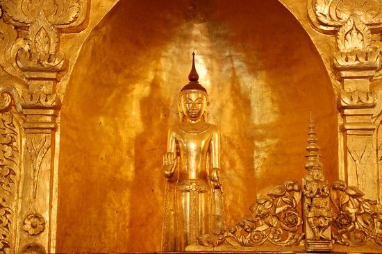 Dieser Buddha wurde schon so beklebt, daß die eigentliche Form verloren ging. Da sind Tonnen von Gold in kleinsten minimalen Blättchen aufgeklebt.