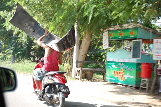 Wenn Ihr mal nicht wisst, wie man einen Kotflügel transportiert, wir leihen Euch unseren Roller....