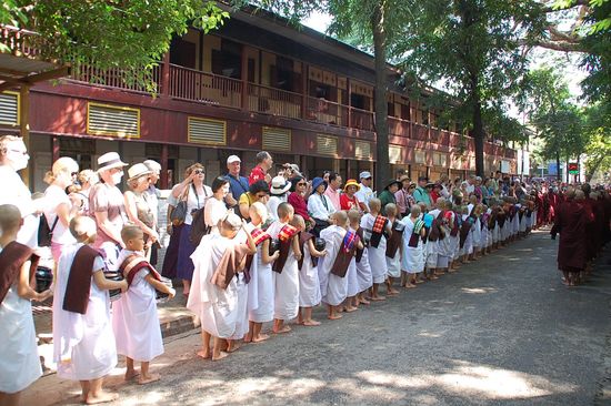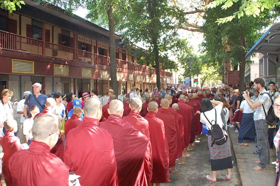 Der folgende Punkt auf dem Plan von Zayar war schon ein sehr interessantes Ereignis. Wir fuhren (mal wieder) zu einem Mönchskloster. Hier gibt es schon um 10.30 Uhr Mittagessen.