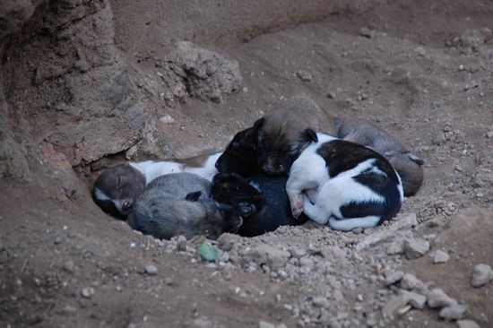 Hier haben wir in einer Ecke ganz junge, aber richtig junge, (die waren keine 3 Tage alt) Hundewelpen entdeckt.