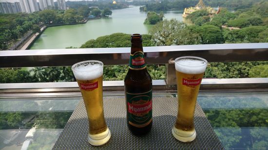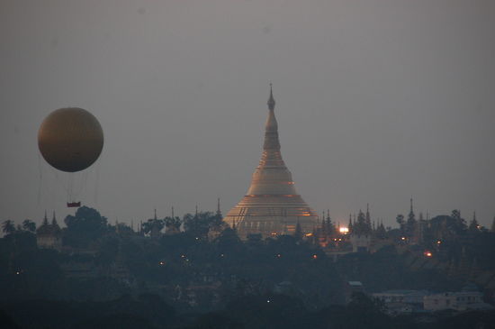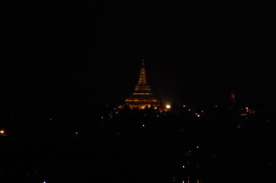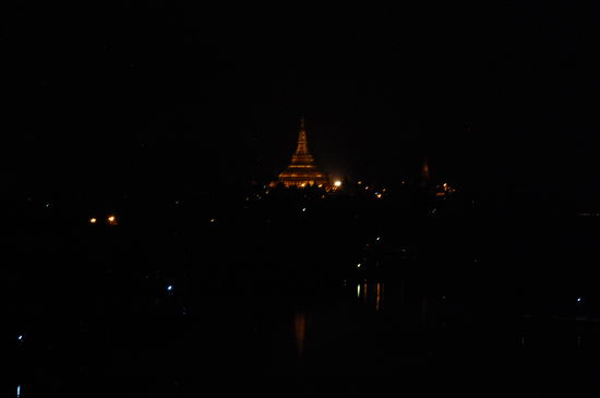 Wie man sehen kann, haben wir von der Dachterasse einen tollen Blick auf den KandawgyiSee und auf die Shwe Dagon Pagode.