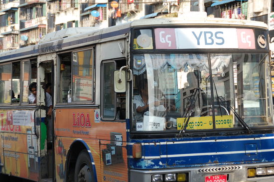 In Yangon dürfen keine Mopeds fahren, daher gibt es doch recht viel Autoverkehr. Hier fahren sie zwar auf der rechten Seite, aber auch das Lenkrad ist rechts....
