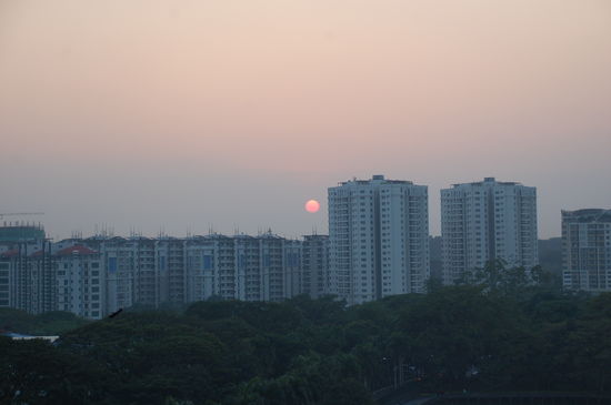 Eigentlich wollten wir den Sonnenuntergang über dem See beobachten, aber die Sonne ging hinter den Hochhäusern unter ....