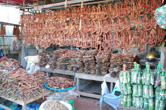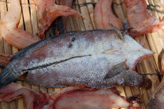 Unterwegs haben wir angehalten, um uns getrockneten Fisch, der an der Strasse verkauft wird, anzuschauen
