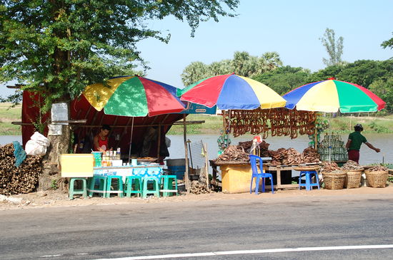 Mittlerweile sind schon 13 Uhr durch, Zayar ist nun auf die Autobahn Richtung Mandalay. Die Strassen sind so, wie wenn man früher durch die DDR gefahren ist.