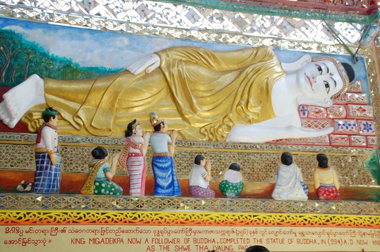 Hier liegt ein über 50m langer und 16m hoher Buddha. Es zeigt Buddha im Augenblick seines Todes, als er ins Nirvana eintritt.