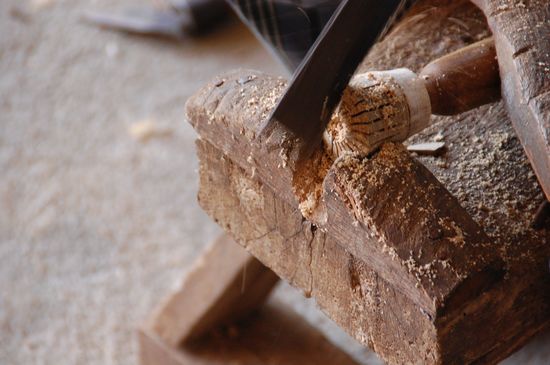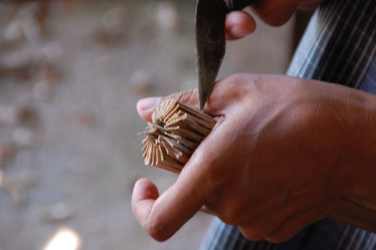 Dann hat man uns gezeigt, wie das Holzgestell für den Schirm gemacht wird, eine ganz filigrane Angelegenheit. Und, wie dann das Ganze zusammen gefügt wird.