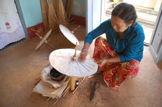 Unser nächster Stopp war dann bei einer Familie die die Tradition der Papierregenschirme noch aufrecht erhält.