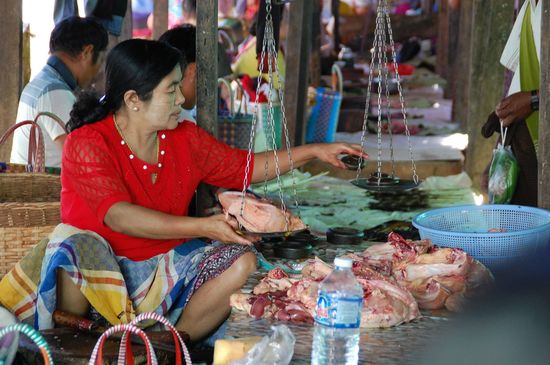 Wir haben uns heute Spießchen und Kartoffeln auf Shan Art (Shan ist der Staat, in dem wir uns befinden) bestellt. Waren zwar Miniportionen, aber sehr lecker.