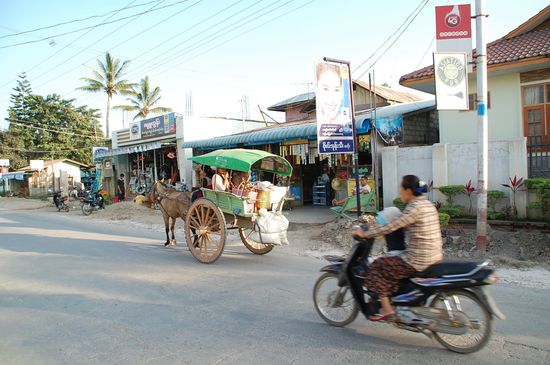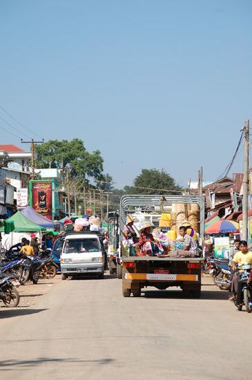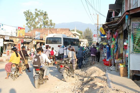 Als wir dann endlich in Nyaungshwe angekommen sind, haben wir nur unsere Rucksäcke abgelegt und sind noch mal in die Stadt gelaufen. Es war ja schließlich erst ca. 16.30 Uhr. Wir sind einfach nur die Hauptstrasse entlang gelaufen. Hier wird ja echt nur gebaut, die Strassen sind Stolperfallen ohne Gleichen.