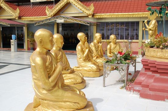 Hier haben wir auch zum ersten Mal Bettler(innen) gesehen, genau zwei alte Damen. Der einen hatte Zayar Kekse aus einer Packung, die er vorher gekauft hatte, in die Bettelschale geschmissen.