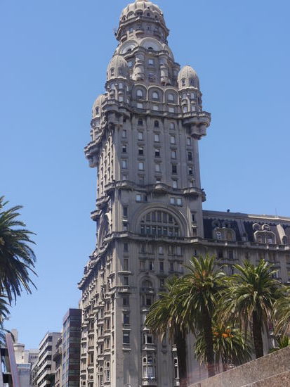 An der Kreuzung der Avenida 18 de Julio und der Plaza de la Independencia überrascht der Palacio Salvo die Besucher mit seinen 105 Metern Höhe. Er wurde von den Textilindustriellen italienischer Herkunft, dem Brüderpaar José und Lorenzo Salvo, in Auftrag gegeben und vom Architekten Mario Palanti 1922 entworfen und im Oktober 1928 eingeweiht. Das markante Gebäude im Stil des Art déco war bis 1935 das höchste Bauwerk in Südamerika. Heute gilt der Palacio Salvo als Wahrzeichen Montevideos und nostalgische Erinnerung an die Periode der Prosperität Uruguays im ersten Drittel des 20. Jahrhunderts.