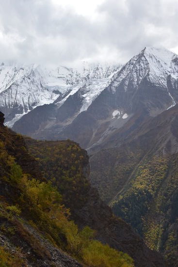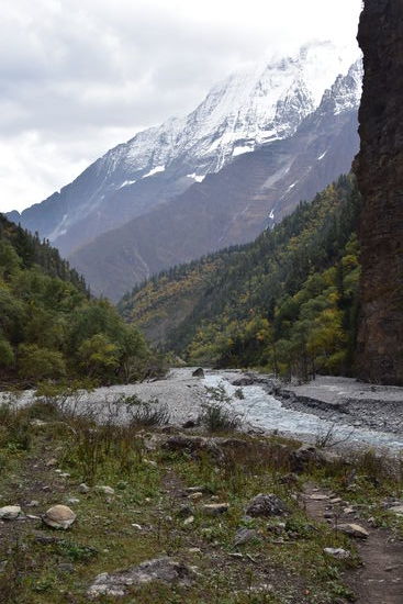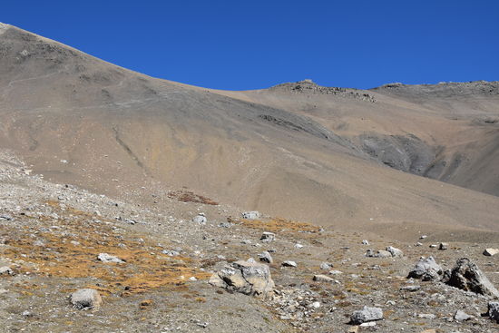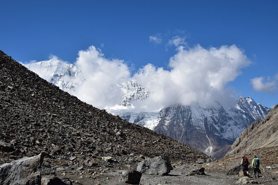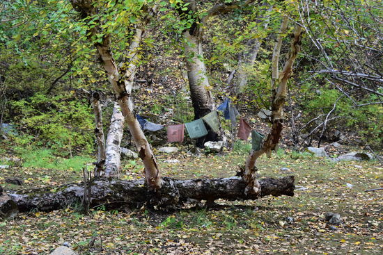 Schlafen war eine Katastrophe. Hatte die ganze Zeit das Gefühl ich versticke und gehustet habe ich natürlich auch. Komisch auf 4600m war das Schalfen kein problem. Da ging es meiner Lunge aber besser. Naja, morgen sind wir tiefer und alles wird gut. Dank der Pferde war der Aufstieg zum 5350m hohen Pass kein Problem. Sind nur die letzten Meter selbts gegangen. Auf dem Pass haben wir uns von Karma Lama II und den Pferden verabschiedet. Nach 1,5h Abstieg gab es Mittagessen. Da insgesamt ein Abstieg von 1600 Höhenmetern anstand, ging es relativ schnell weiter. Die Landschaft hat sich komplett verändert. Die letzten Tage war es sehr karg und nun ging es entlang Flusses bergab. Auf einmal wurde es wieder grün und es gabe richtig viele Birken. Das Tal hat sich geweitet und gegenüber von einem Gletscher haben wir unser Lager aufgeschlagen.