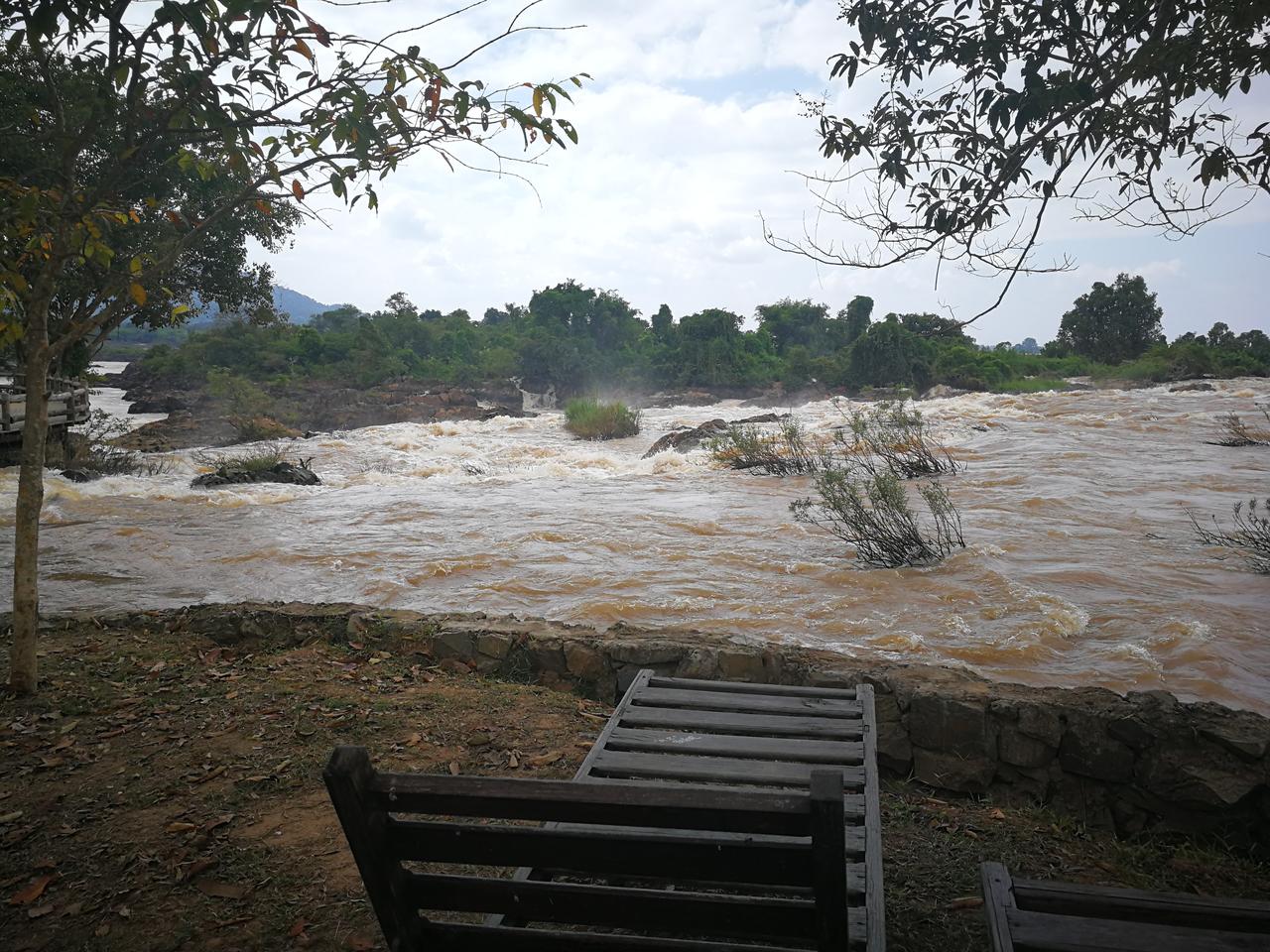 Nach dem Aufstehen bin ich heute morgen direkt zum Fahrradverleih und habe mir ein Fahrrad (gleiches Modell wie in Champasak, aber etwas besser gepflegt) ausgeliehen. Ich bin um 9:30 Richtung Brücke nach Don Det losgefahren. Der Weg war z.T. sehr interessant und hatte eher was mit einem Trail zu tun. Das ganze auf einem Fahrrad ohne Gangschaltung, Vorderrad mit einer leichte Acht drin und ohne Federung. Naja, geht alles. Nach der Brücke stand eine alte Lok der Franzosen. Diese haben auf Don Khong eine Bahnstrecke vom Süden in den Norden gebaut bzw. Richtung Don Det (deswegen auch die Brücke). In der Nähe der Lok befand sich ein kleiner zugewachsener Friedhof. Von dort ging es an einem Tempol vorbei Richtung Somphavit (Liphi) Wasserfall. Der Wasserfall war nicht so hoch, aber man kam bis auf einen Meter ran und das war doch sehr beeindruckend. Außerdem gab es eine kleine Badestelle mit Liegen. Die Liegen waren nur wenig oberhalb des Wasserfalls und ich habe mich dort erstmal ausgeruht. Auf dem Gelände des Wasserfalls gab es auch noch einen Strand mit Bar und Bunglows. Da alles noch geschlossen war und auch noch nicht für die Saison vorbereitet war, war es noch nicht ganz so einladend. Ich bin zurück zu meinem Fahrrad und auf der alten Einsenbahntrasse (heute ein ganz passabler Weg) zu dem Ort Ban Hang Khone gefahren. Dort gibt es noch die alte Verladerampe der Franzosen und ebenfalls eine alte rostige Dampflokomotive. Von dort starten auch die Boote um die letzten wenigen Irrawaddy Delfine zu beobachten. Nach einerCola im Schatten wollte ich auf einem alten Weg an der Westseite der Insel zum Khon Pa Soi Wasserfall fahren. Ich wurde schon gewarnt, dass der Weg ziemlich zugewachsen ist und es dort drei mehr oder wenig verfallene Brücken gibt. Nach ein paar hundert Meter auf dem Pfad kam ich zu ersten Brücke. Diese habe ich überquert (sehr langsam und vorsichtig) um festzustellen, dass der Pfad danach richitg zugewachsen war und laut Maps.Me eine weitere komplett verfallene Brücke kommen sollte. Über die erste Brücke wollte ich mit meinem schweren Fahrrad nicht noch einmal und habe glücklicherweise einen anderen Weg (ging ein paar Meter steil zu einem Bach runter und dann über einen Baumstamm über den ich das Fahrrad getragen habe) gefunden. Völlig verschwitzt bin zurück Richtung Hauptweg (Eisenbahntrasse). Ich bin mir nicht sicher ob, es an der Hitze lag oder, ob es wirklich den kompletten Rückweg leicht bergauf ging. Auf jeden Fall war es richtig anstrengend. Ich bin dann ohne weiteren Umwege wieder Richtung meines Guesthouse gefahren und bin dort gegen 16:00 total verschwitzt und fertig wieder angekommen. Nach einer Dusche bin ich noch einen Burger essen gegangen und nach einem Lao Lao Mojito wieder zurück ins Guesthouse. Noch den Blog vom Vortag geschrieben und Bilder hochgeladen. Das Hochladen hat ewig gedauert da das Internet extrem langsam war. Danach ins Bett. Am nächsten Tag hatte ich eine ganztägige Kayak-Tour gebucht.