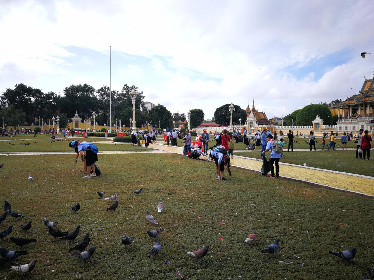 Mein Wecker ging um kurz nach 7:00. ich wollte in Ruhe frühstücken und noch einen letzten Spaziergang an der Uferpromenade machen. Außerdem beim französischen Bäcker ein Brötchen für die Fahrt mitnehmen. DIe Uferpromenade war zwar heute wieder für den Verkehr frei gegeben, aber trotzdem ging es ruhiger zu als die letzten Tage. Ich habe heute beim Frühstück auch gesehen wie die Drachenboote nach Phnom Penh gekommen sind. Sie werden einfach von einem Schiff in Schlepptau genommen. Zur Not auch mal mit der kompletten Besatzung. Um 9:30 bin ich mit dem Tuk Tuk zur Sorya Busstation gefahren. Der Bus war schon da. Für mich gab es jetzt keinen großen Unterschied zwischen dem VIP-Bus und dem Normalen. OK, beim VIP-Bus gab es eine kleine Flasche Wasser und man durfte sich schon bei der Buchung seinen Sitz raussuchen. Ansonsten gab es unterwegs wie immer eine kurze Essenspause und ich habe mir mal wieder eine frische Ananas gegönnt. Das Obst werde ich in Deutschland echt vermissen!