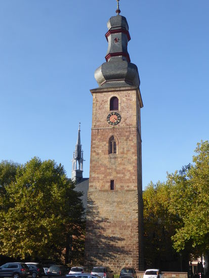 Mit frei stehendem Glockenturm. Gotische, dreischiffige Hallenkirche (heute nur zweischiffig), ursprünglich St.Martin, ab 1333 erbaut von den Grafen von Zweibrücken. Seit 1532 ist sie reformierte Kirche, 1684 bis 1879 Simultankirche, danach umfassende Renovierungsarbeiten im neugotischen Stil. Barockes Glockengeschoss und anmutige Turmhaube aus dem 18. Jahrh.