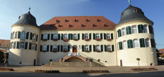 Die Schlossgasse führt zum Riesentor (1579). Vierflügelbau der Herzöge von Zweibrücken im Renaissancestil, ehemalige Wasserburg. 1525 im Bauernkrieg zerstört, Wiederaufbau 1526-79. Der Südflügel ist flankiert von zwei Wehrtürmen aus dem 16. Jh., Freitreppe aus dem 19. Jh,. Heute Sitz von Verbandsgemeinde und Stadtverwaltung.