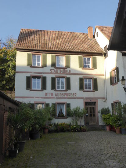 Auch Stadtmühle. Erstmals urkundlich erwähnt im Jahre 1430. 1881 erworben von Otto Augspurger. Sehenswert ist die vollständig erhaltene, historische Mühleneinrichtung von ca. 1900, die immer noch funktionsfähig ist.