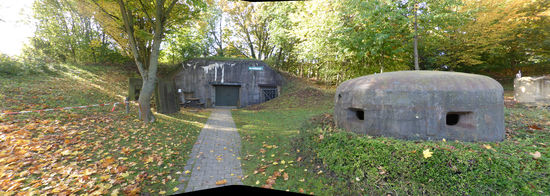 Der rechte Bunker, mit rekonstruiertem Innenraum, wurde so originalgetreu wie irgend möglich eingerichtet. Nicht nur das damals standardmäßig verwandte 10,5 Geschütz ist zu sehen. Auch der Unterkunftsbereich der Soldaten, das ehemalige Munitionslager, in dem als militärisches Fernmeldematerial aus der Zeit ausgestellt wird, bieten Ihnen einen authentischen Einblick in das Bunkerleben.