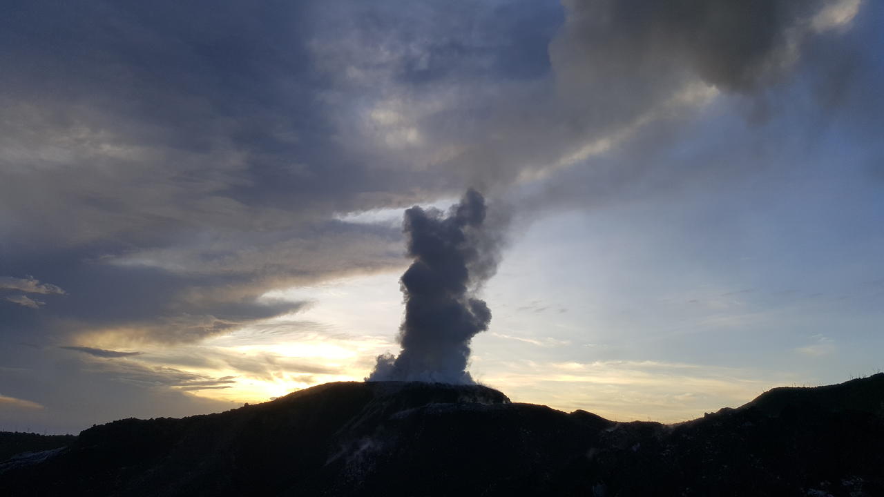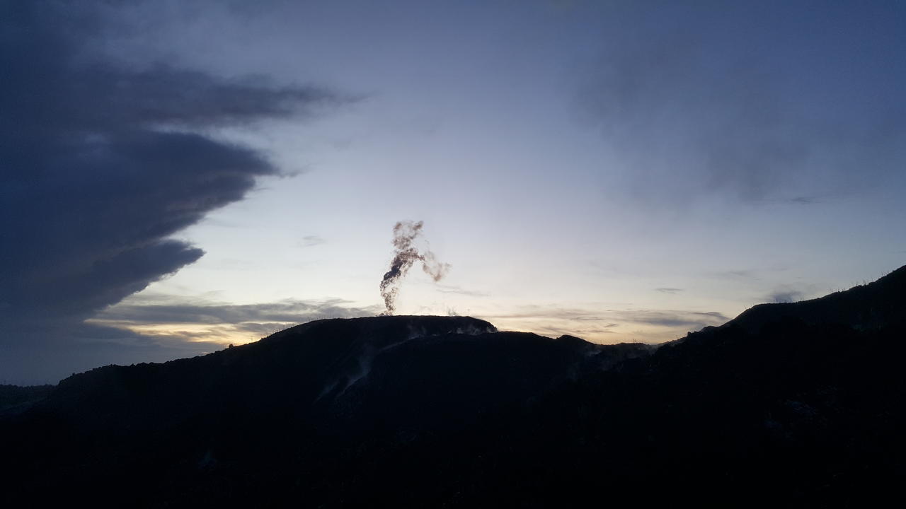 Nach den Eruptionen hört man scheppernde Geräusche. Das ist die Lava die an den Seiten mit Krach herunterläuft. Ich bekomme Gänsehaut..