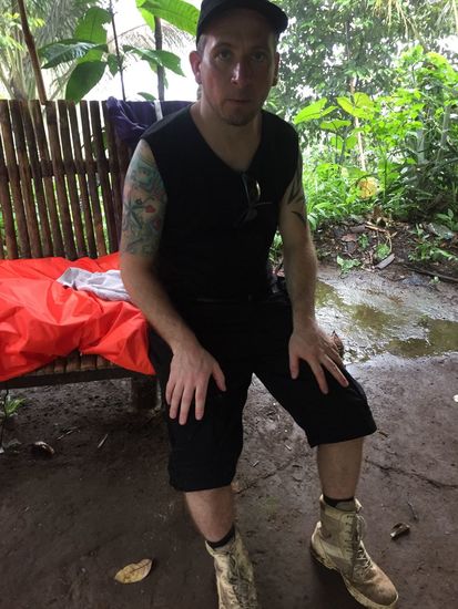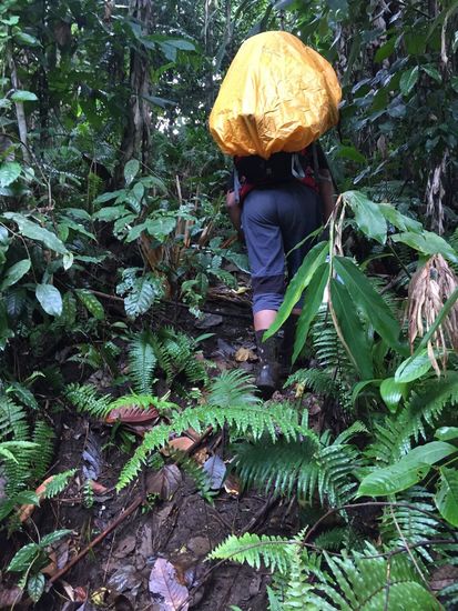 Björn hat tatsächlich die ganze Nacht in der Hängematte geschlafen und will sie auch mit hoch auf den Ibu nehmen.