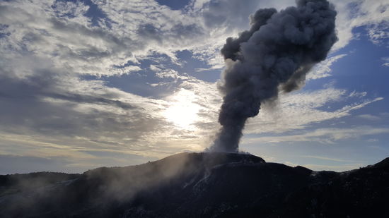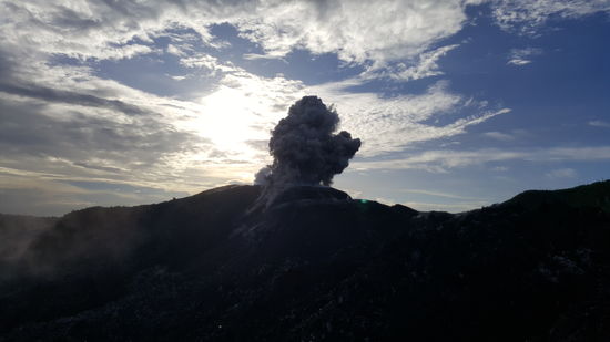 Die Stimmung ist unglaublich--jedesmal nach den Detonationen hört man die Lava herunterrollen und sieht auch kleine Feuerkugeln.