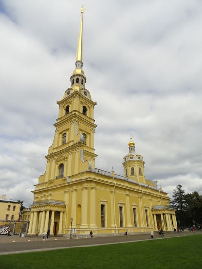Nach diesem Start nahm ich die Metro zur Station Nevsky Prospect von wo aus man sehr schöne Stadtspaziergänge unternehmen kann. Sehr sehenswert sind die Auferstehungskirche, die Kasaner Kathedrale und natürlich die weltweit bekannte Eremitage. Auf dem Weg zur Eremitage machte sich anhand des Wetters bemerkbar, dass St.P. am Finnischen Meerbusen liegt und sich das Wetter sehr schnell ändern kann. Glücklicherweise blieb es noch bis zum Abend trocken. Aus zeitlichen Gründen entschied ich mich dagegen, die Eremitage zu besuchen, alleine dafür braucht man schon eine ganze Woche habe ich mir sagen lassen. Weiter ging es Richtung Peter-und-Paul-Festung, welche ein Erholungsort und Museum ist. Sehr beeindruckend sind die dicken Mauern und die Peter-und-Paul-Kathedrale. Auf dem Weg zurück zum Hotel fiel mir auf, dass viele ältere Damen an verschiedenen Gebäuden teilweise weinend Blumenkränze niederlegten. Mein Freund antwortete mir auf meine Frage, dass das jedes Jahr am 08. September an vielen Stellen gemacht wird, um den Opfern der Blockade zu gedenken, welche am 08. September 1941 begann. Des Weiteren fiel mir auf, dass vielerorts Gedenkplaketten an Wänden angebracht sind, welche Blockade thematisieren. In einer Metrostation befanden sich Mosaiken die darstellten, wie russische Jagdflugzeuge, deutsche Bomber vom Himmel schossen. Mein russischer Freund dachte erst, dass ich entsetzt darüber wäre, aber im Gegenteil: Dies fand ich sehr interessant zu sehen, wie die beiden Länder mit dem Krieg umgehen. Natürlich ist es auch eine Persönlichkeitsfrage, aber nichtsdestotrotz muss man sagen, dass der Krieg präsenter als zu Hause in Deutschland ist.