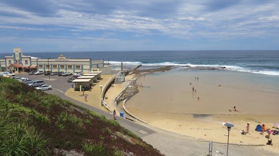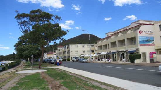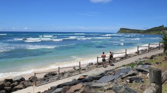 und ein Stückchen weiter Copacabana, aber mit Rio hat das hier sehr, sehr wenig gemeinsam, der Sand ist gelb, die Bikinis riesig, Der Captain Cook Lookout bietet nochmals einen schönen Ausblick, erklärt die Namensgebung vor knapp 250 Jahren, aber ansonsten ist hier recht wenig geboten.