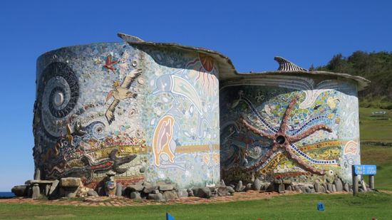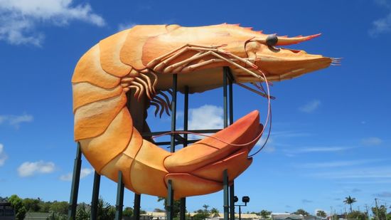 dort hoch zum Lookout, ein sehnsüchtiger Blick raus aufs Meer, aber die letzten Wale sind hier bereits Ende Oktober durchgezogen. Also weiter nach Ballina, ein weiterer recht nichtssagender Ort am Wegesrand, wenn da nicht dieser riesige Schrimp irgendwie für Aufmerksamkeit sorgen würde.