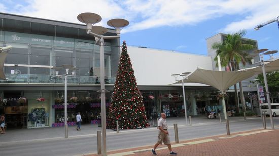 nach Coffs Harbour mit seiner ‚Big Banana‘, seiner Down Town, wo Weihnachtsbaum und Palmen ein friedliches Nebeneinader feiern