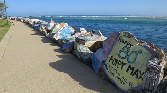 ein Besuch in Numbucca Heads, wo natürlich die Graffiti (Malereien??) an der V-Wall, dem Water Breaker bestaunt werden müssen,