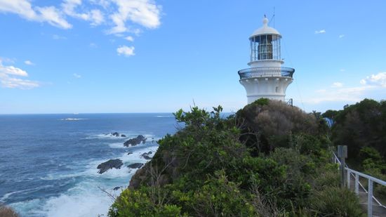 einst als Gefängnis gebaut, während WW1 zum Internierungslager für deutsche Auswanderer umfunktioniert und nach weiteren wechselhaften Jahren mittlerweile ein Museum (AUD 11pP) mit angeschlossenem NP Campingplatz. Ein Stück weiter das Smocky Cape Lighthouse, mit 128m/NN der höchstgelegene Leuchtturm in NSW,